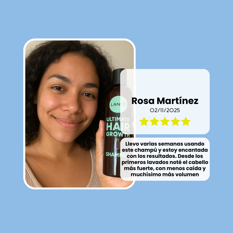 Mi pelo estaba cada vez más fino y me daba inseguridad. Desde que uso este champú lo noto más fuerte y con más volumen. Me ha devuelto la confianza.